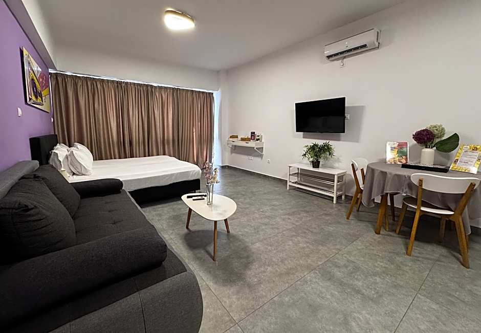 This suite is consisted of of a common space with 1 living room - bedroom and 1 bathroom with a shower and free toiletries. The well-fitted kitchenette features a refrigerator, a microwave, a tea and coffee maker and a toaster. This air-conditioned suite features a dining area, a flat-screen TV with streaming services a private entrance and a balcony. The unit offers 4 beds.